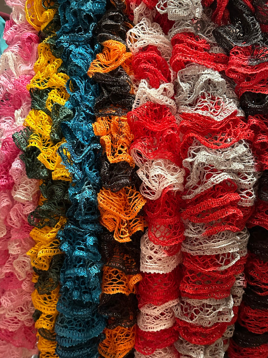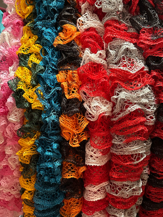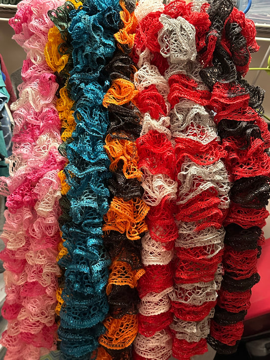 Red & White Ruffled Scarf